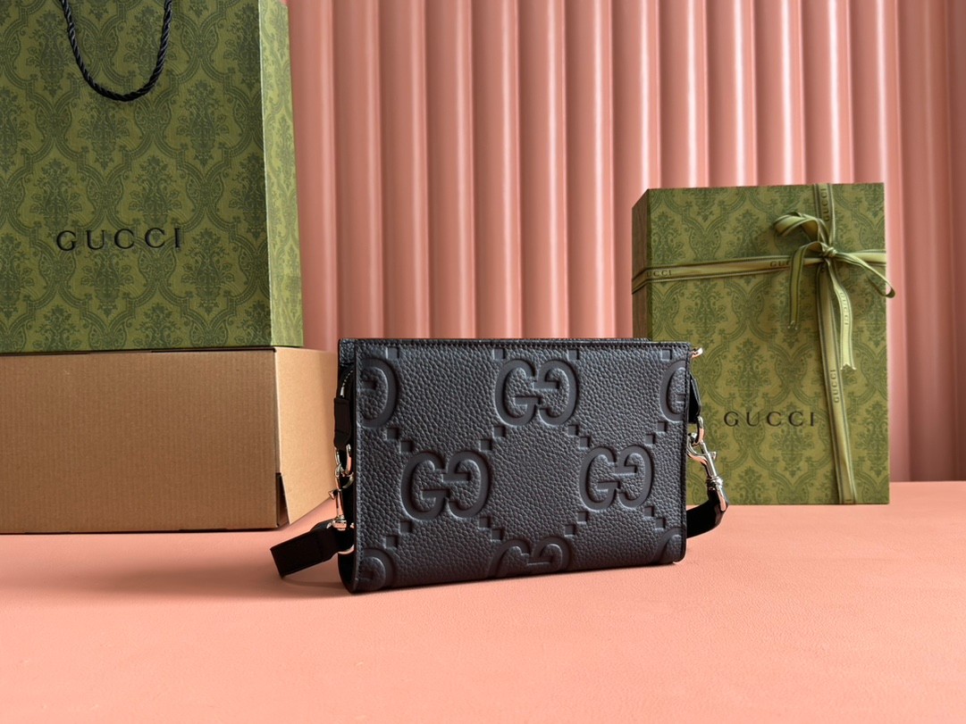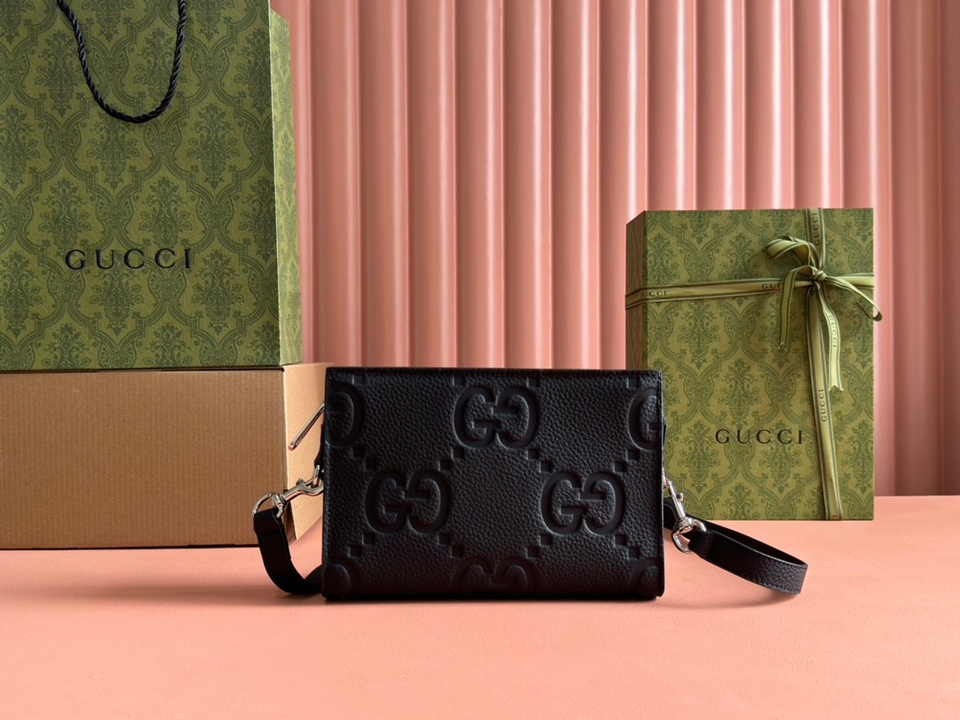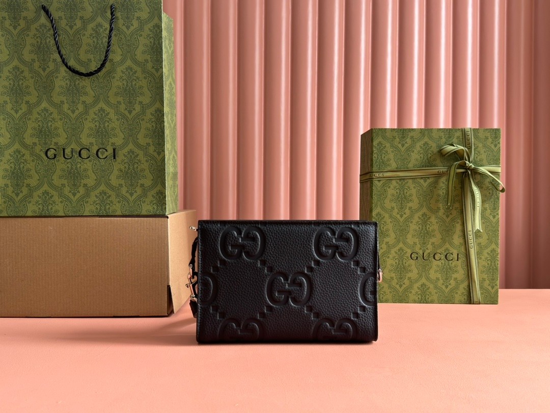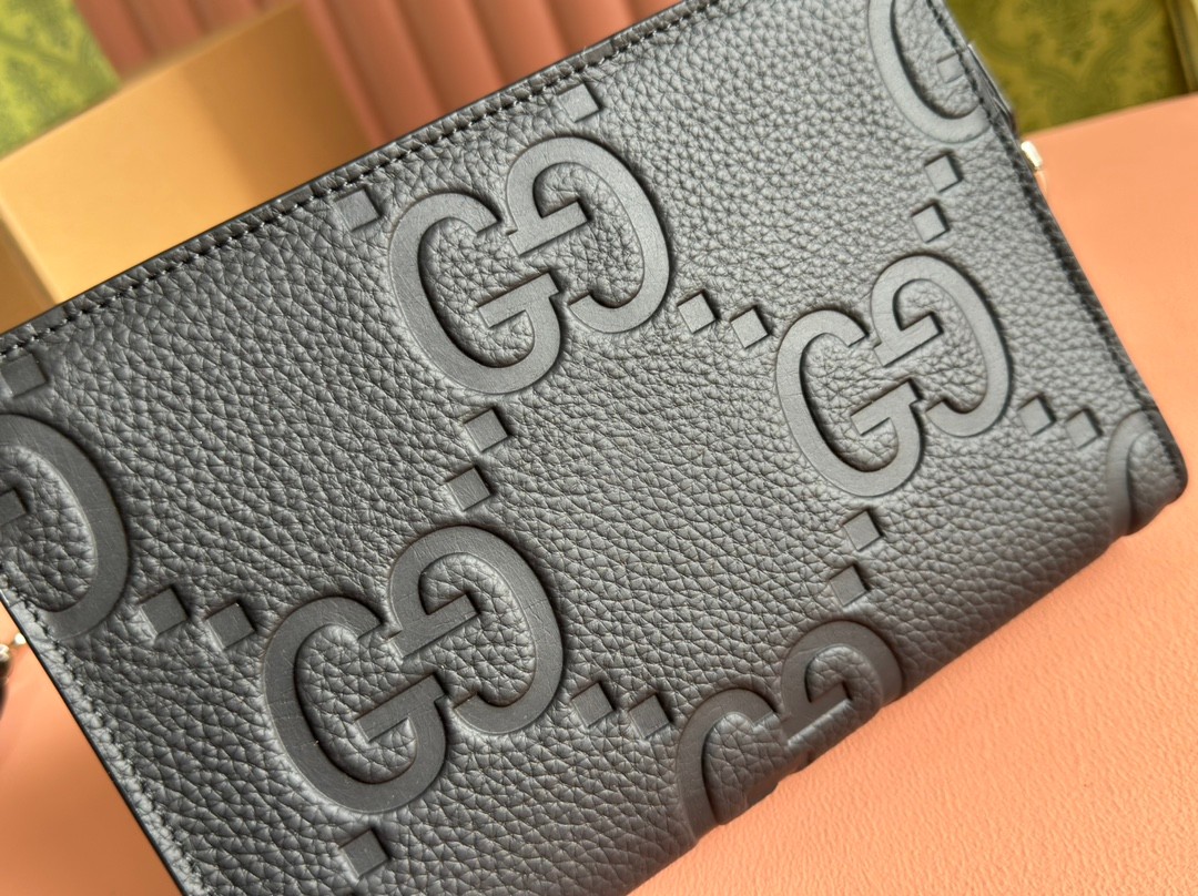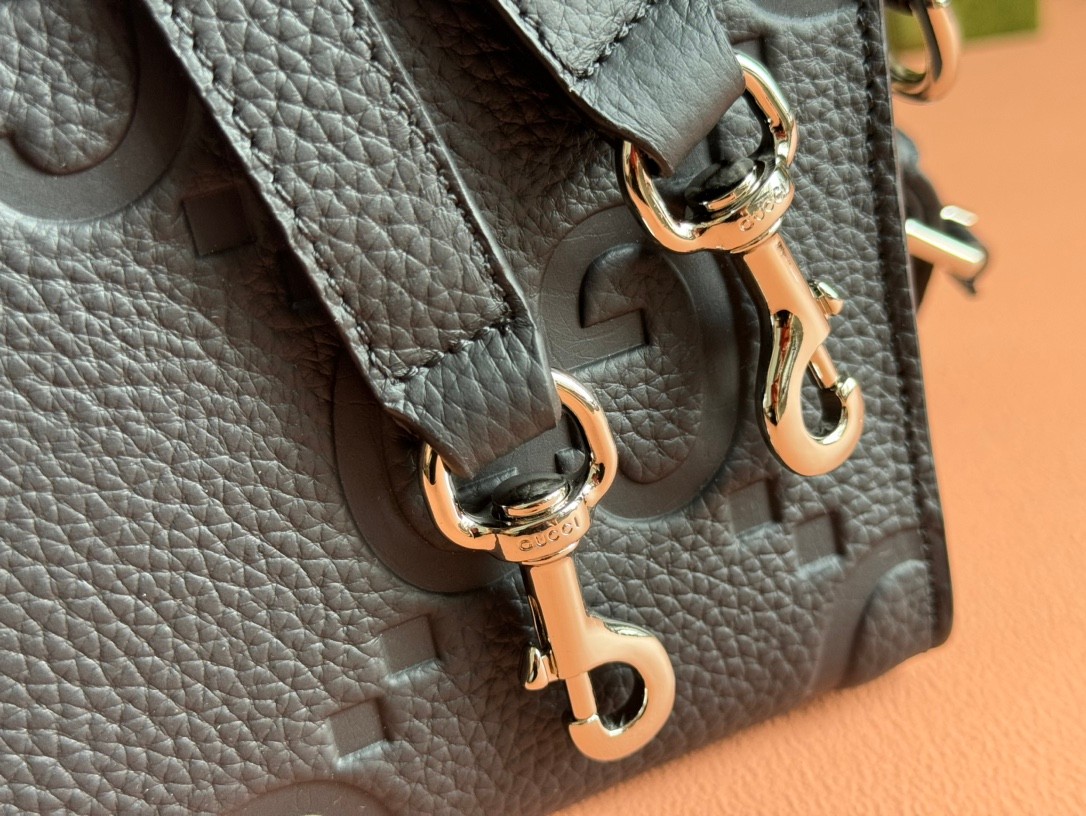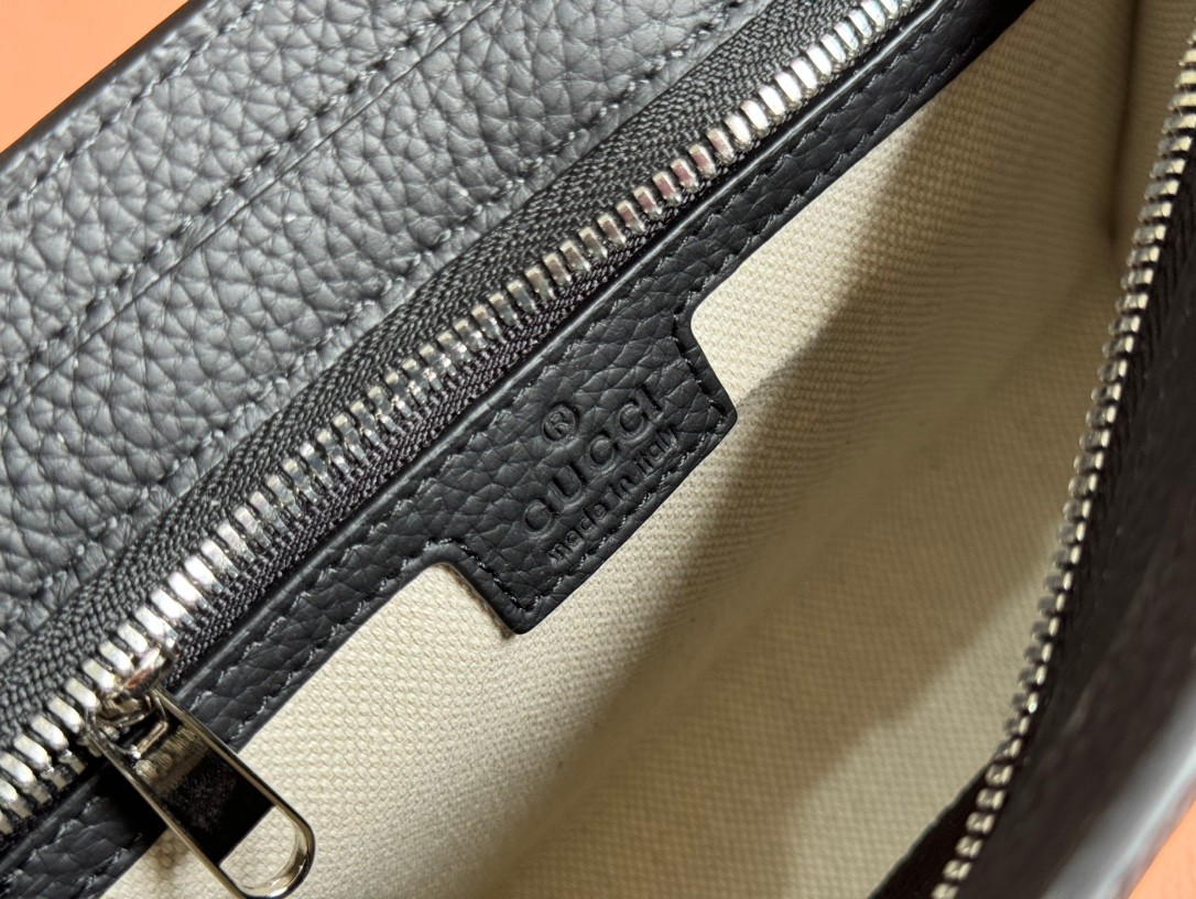 블랙 울트라 더블 G 가죽, 면과 린넨 혼방 라이닝, 내부: 카드 칸 2개와 지퍼 포켓 1개, 탈부착이 가능한 어깨끈(55cm 높이) 지퍼 여밈.
