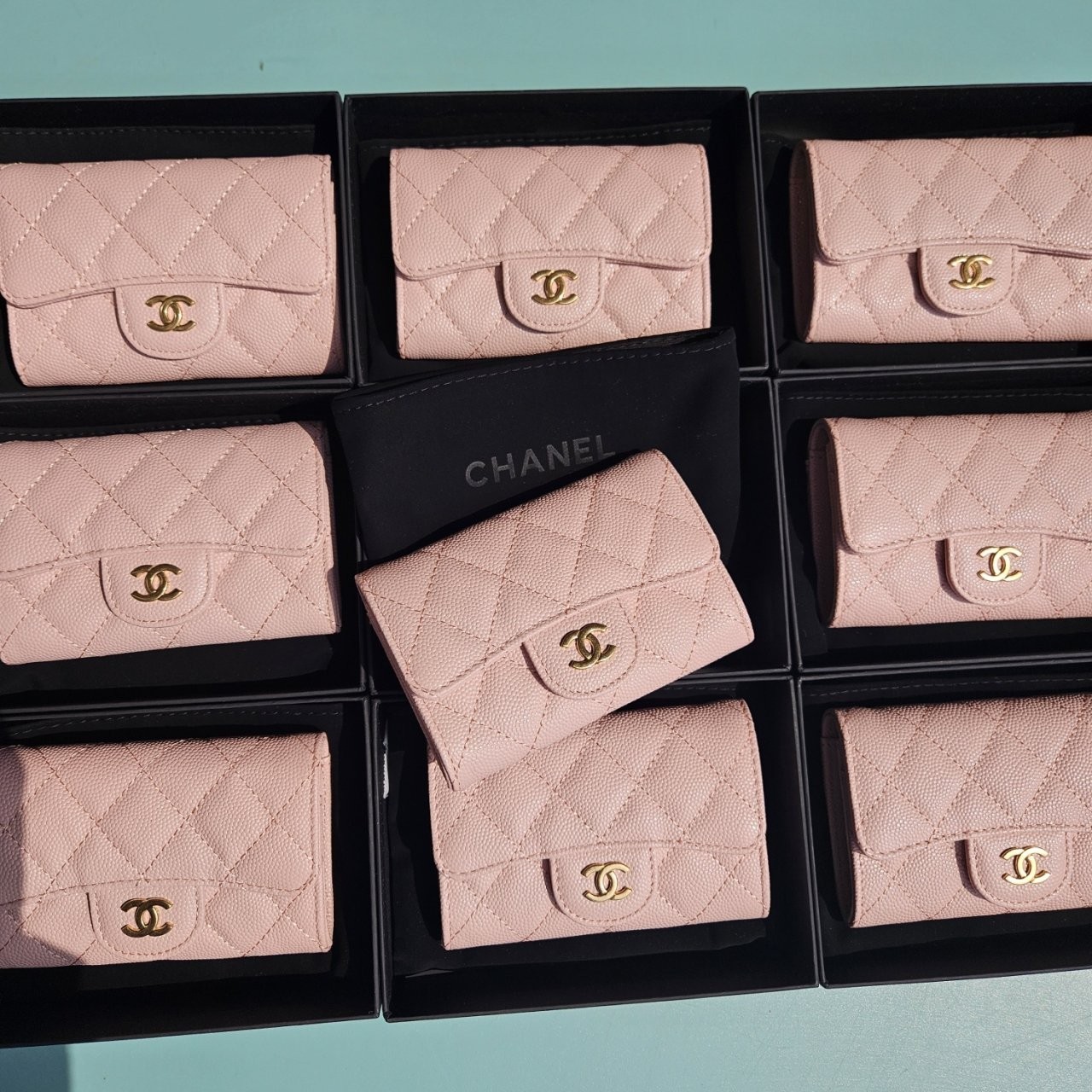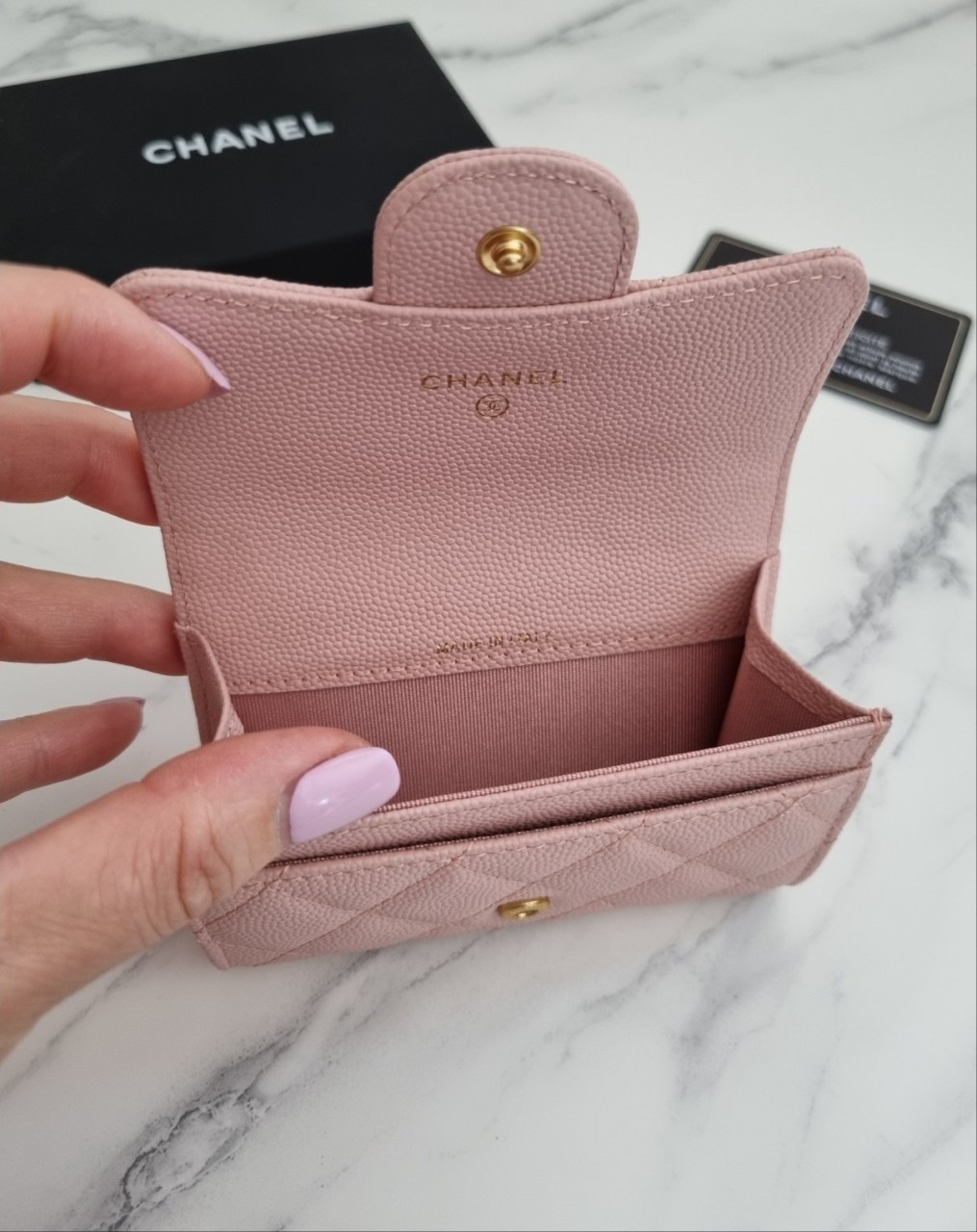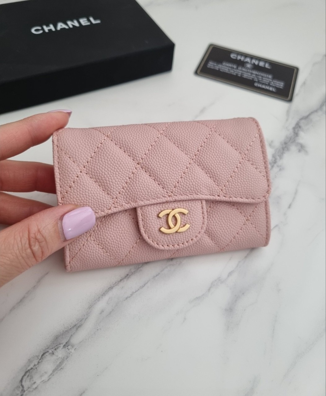 [샤넬] 클래식 플랩 카드명함지갑 (뒷포켓O/핑크금장/프리미엄급)