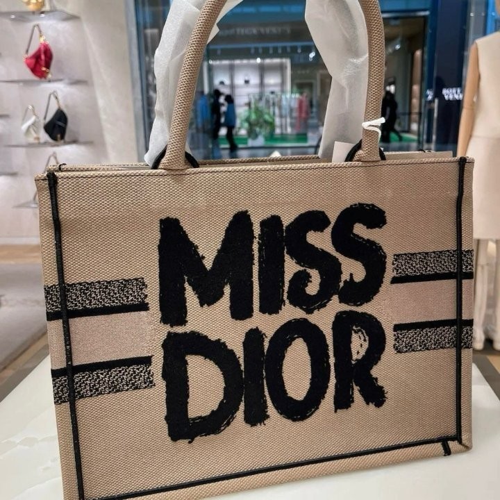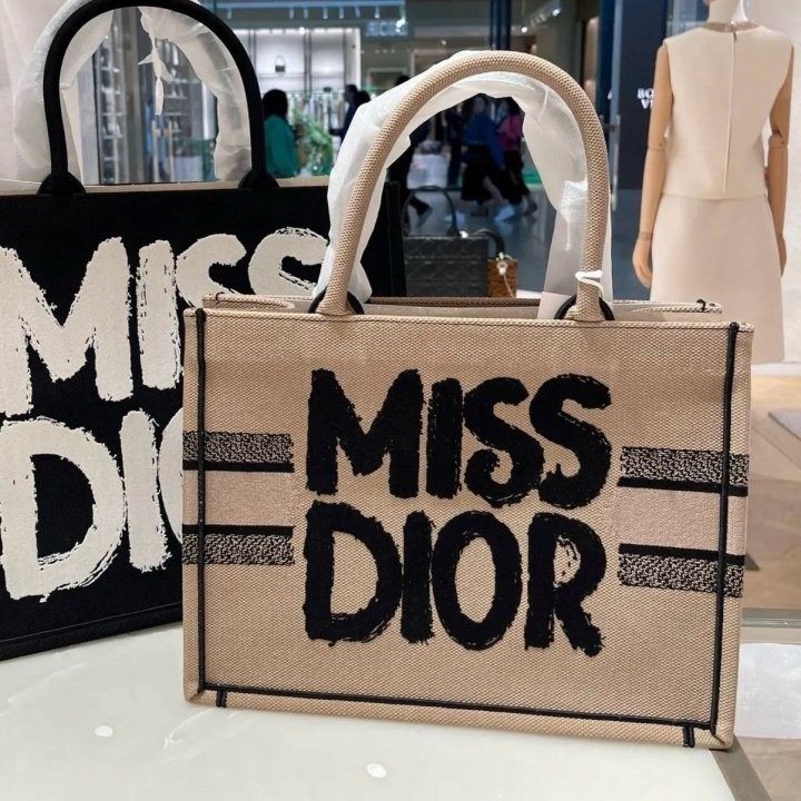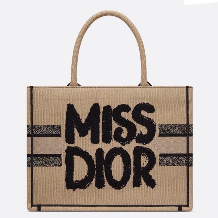 [디올] 베이지 & 블랙 Miss Dior Graffiti 자수 북토트 미디엄 백