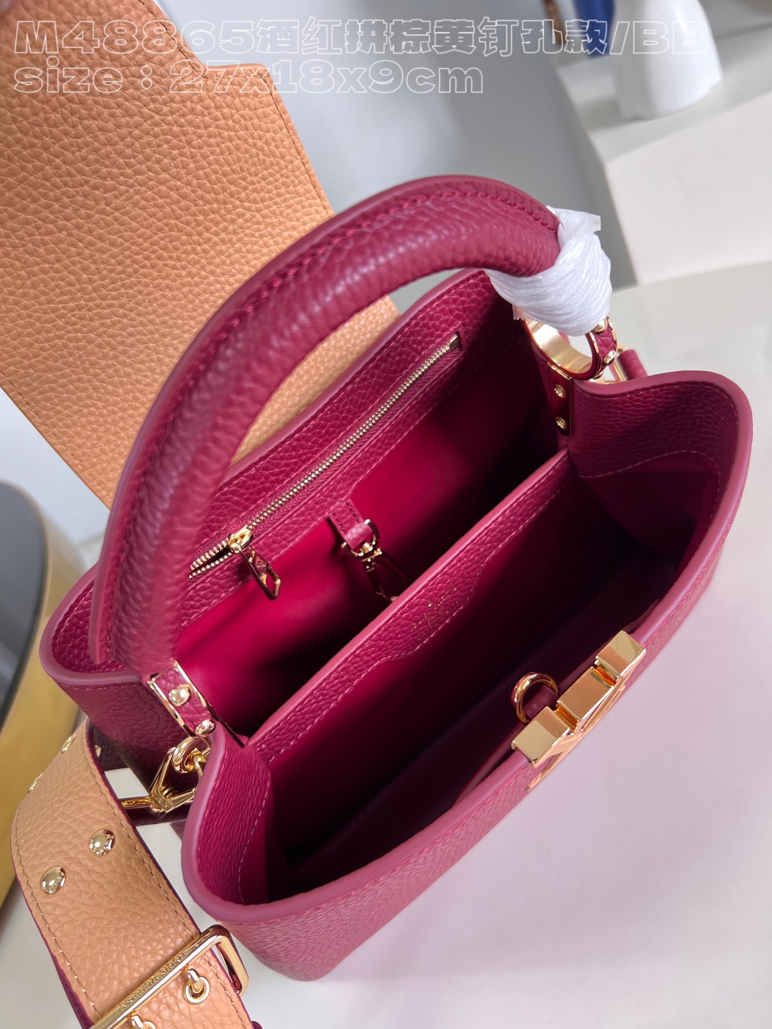 【M48865 버건디 브라운 스터드 타입 스몰 사이즈】Capucines BB 클러치