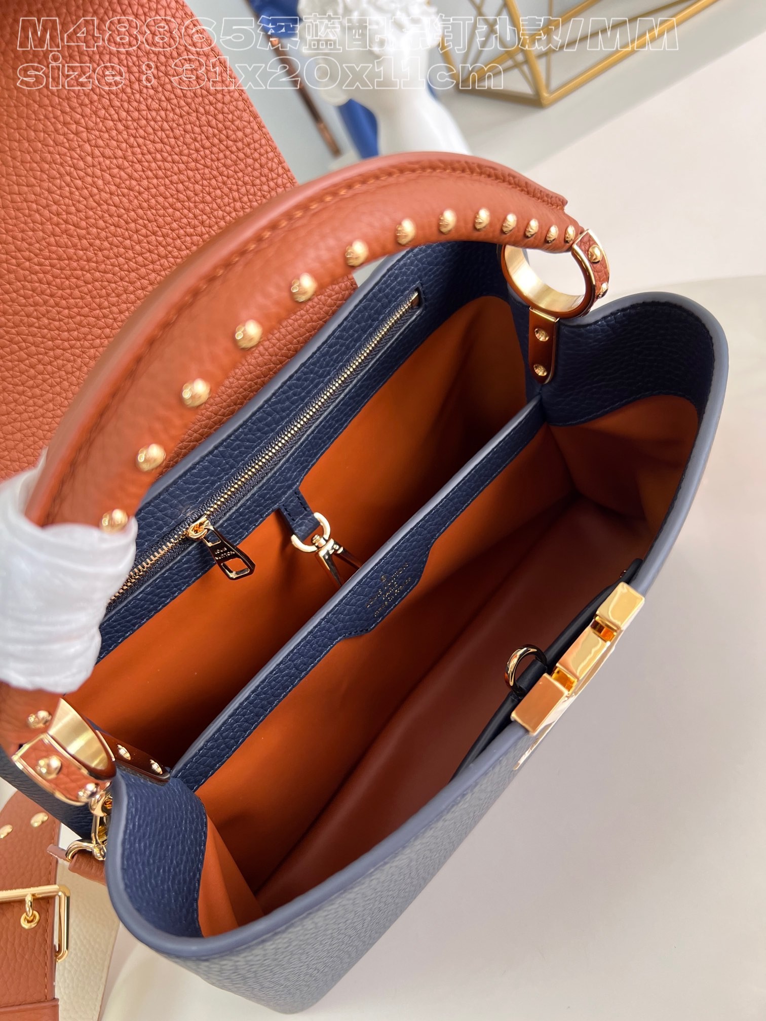【M48865 네이비 브라운 스터드 미디움 사이즈】Capucines MM 클러치