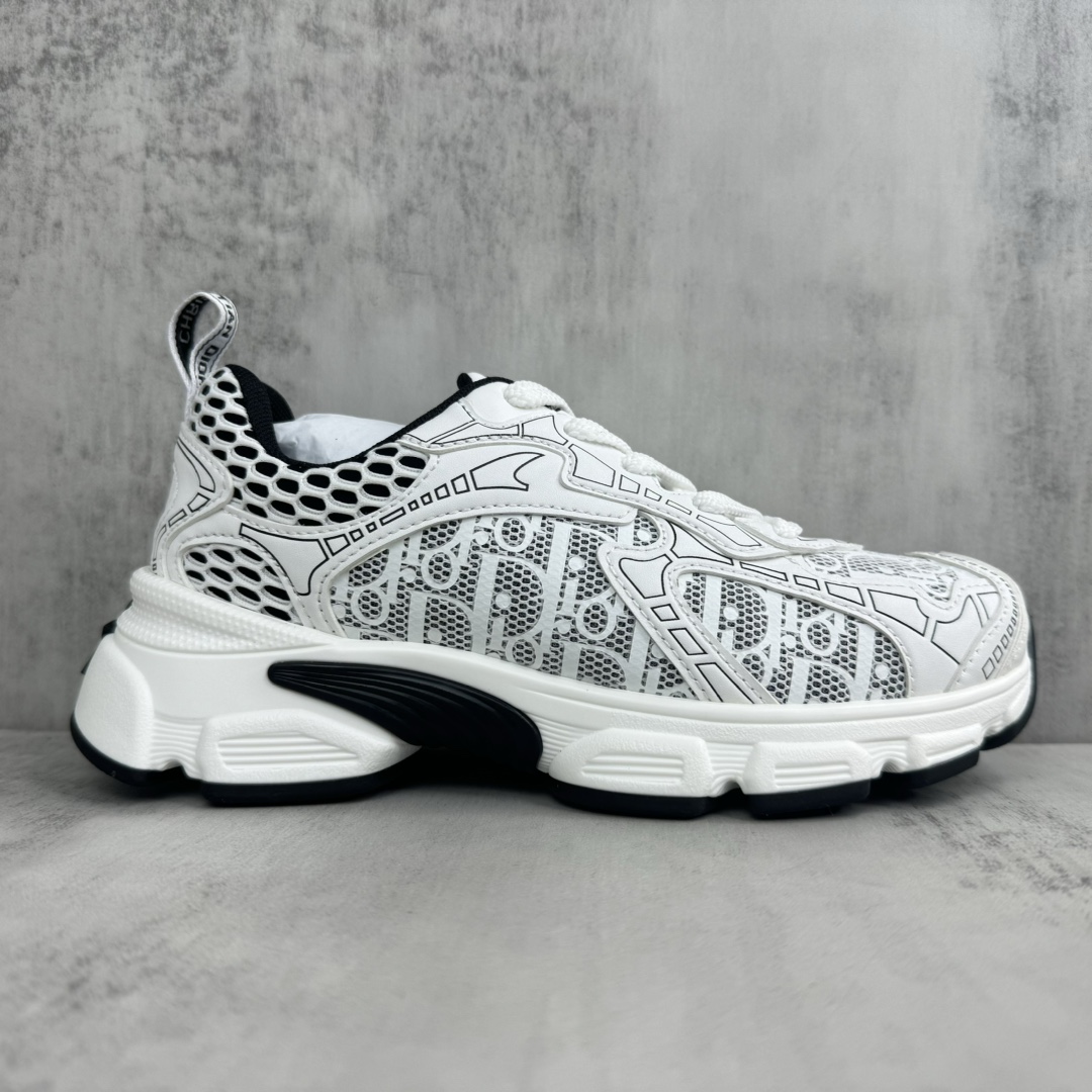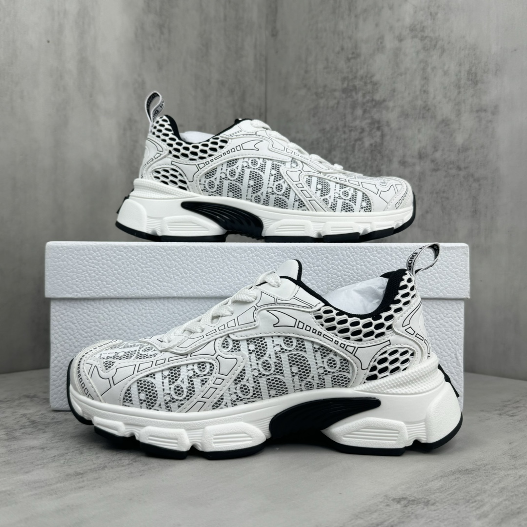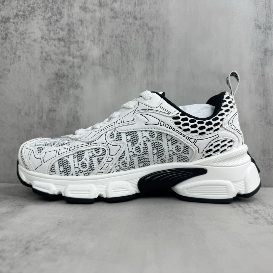 디올 Vibe 스니커즈 화이트 Dior Oblique 모티브 프린트 메시 & 화이트, 블랙 가죽-이펙트 패널 [매장가 150만원대]