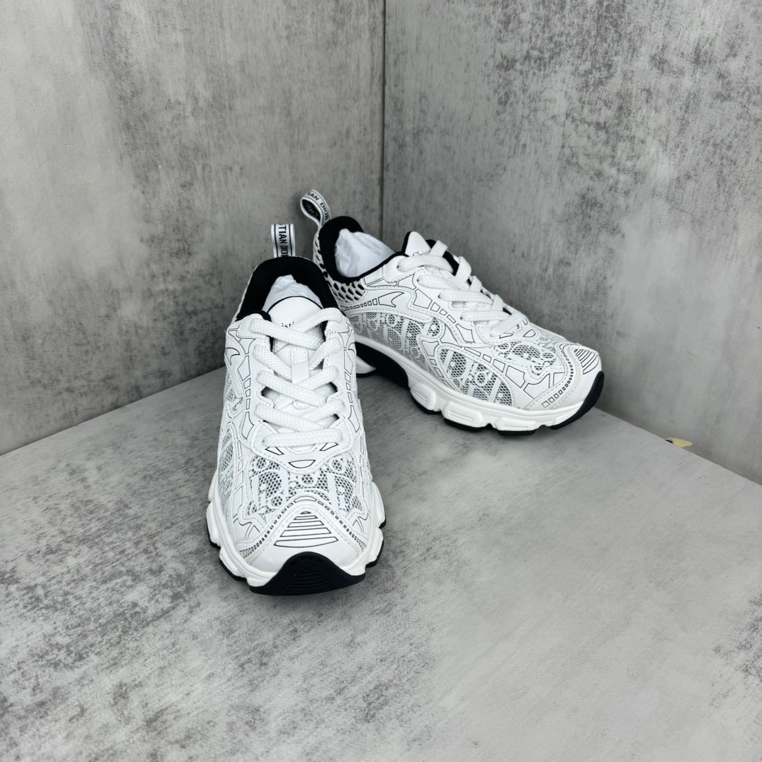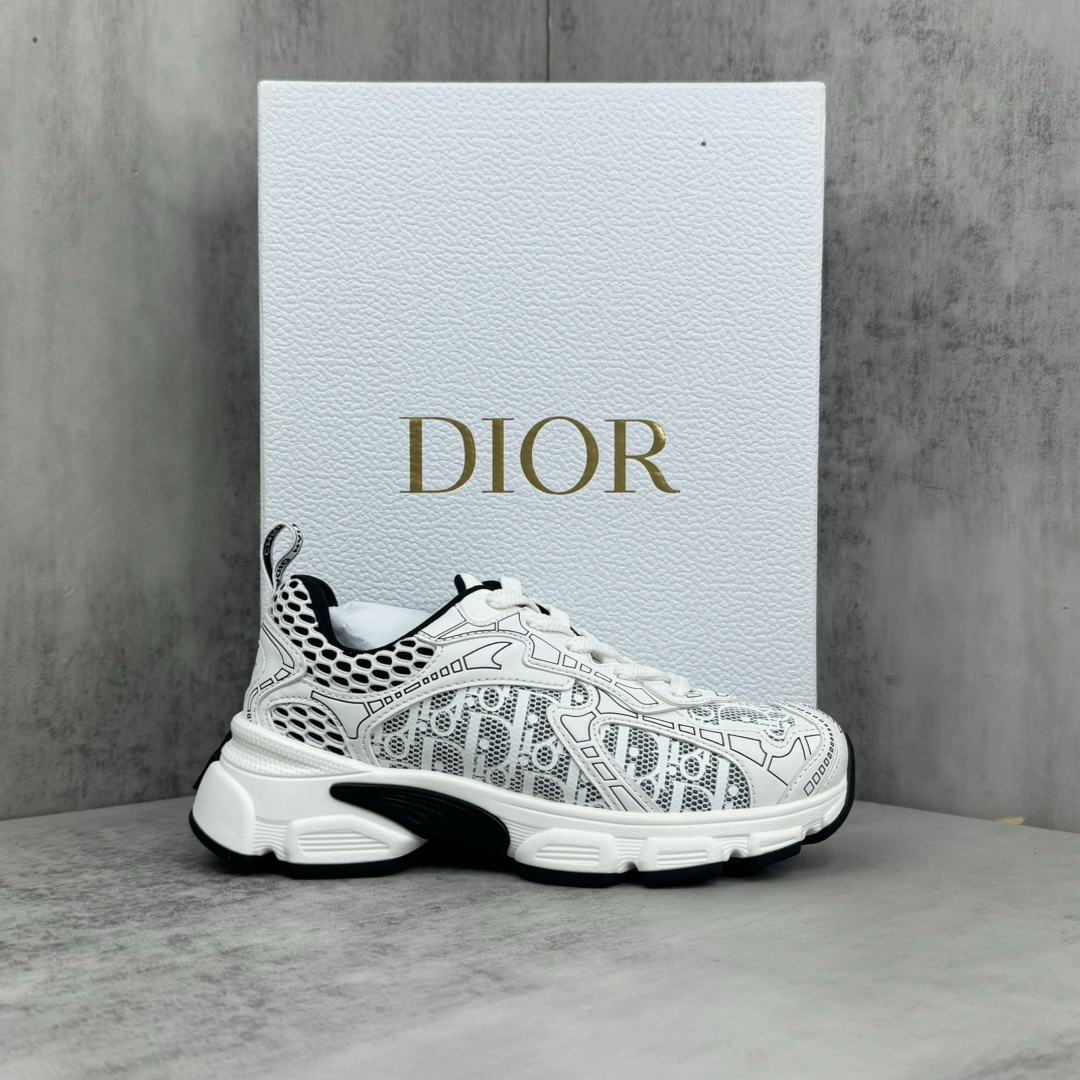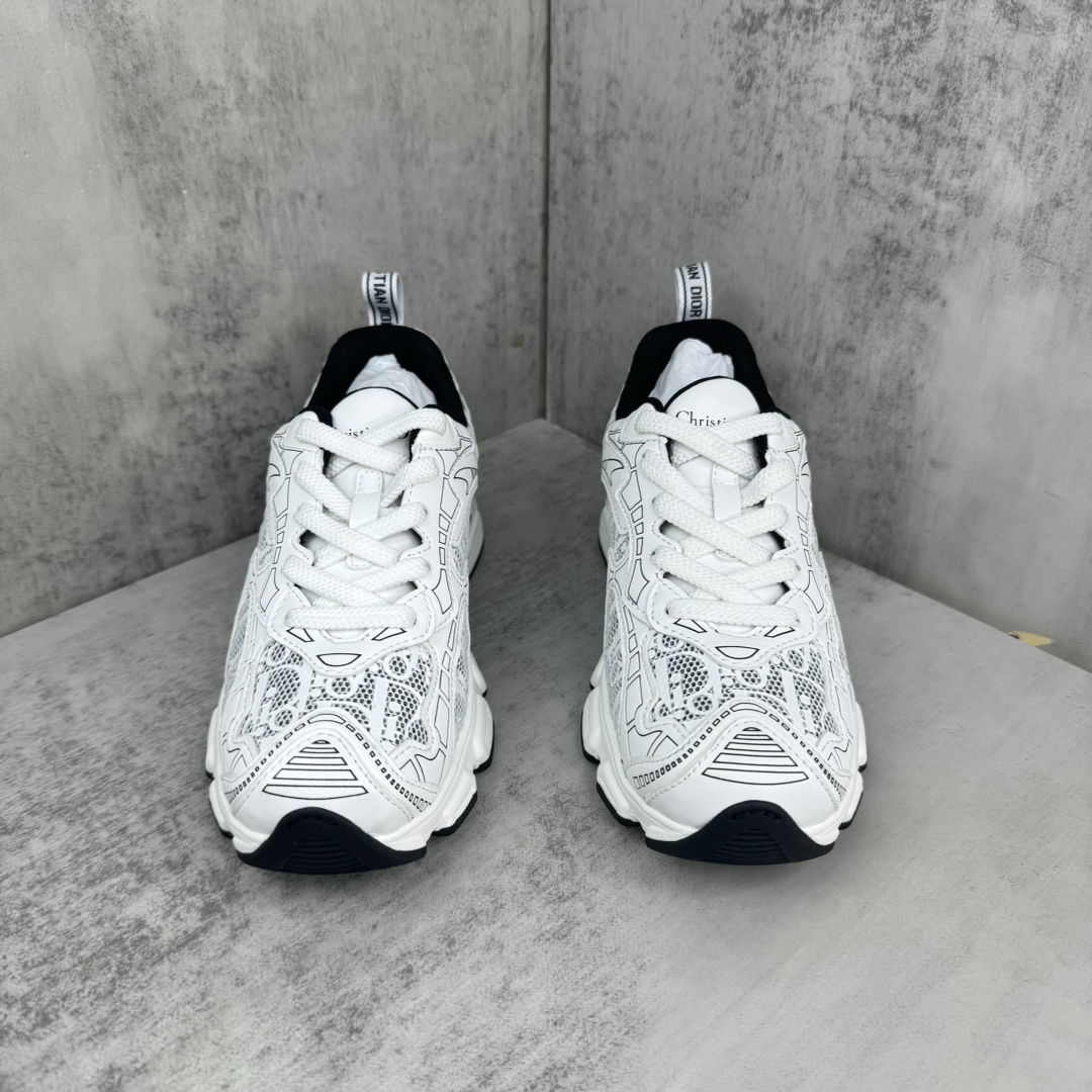 디올 Vibe 스니커즈 화이트 Dior Oblique 모티브 프린트 메시 & 화이트, 블랙 가죽-이펙트 패널 [매장가 150만원대]